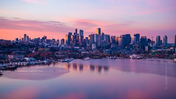 Seattle Aerial Photography Downtown Seattle Reflected in Lake Union Sunrise #seattle #dronephotography #dronevideo #aerial #aerialphotography #aerialvideo #northwest #washingtonstate