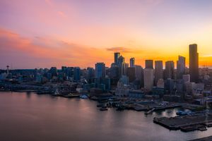Seattle Aerial Photography Downtown Sunrise #seattle #dronephotography #dronevideo #aerial #aerialphotography #aerialvideo #northwest #washingtonstate