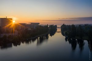 Seattle Aerial Photography Montlake Bridge UW Sunrise #seattle #dronephotography #dronevideo #aerial #aerialphotography #aerialvideo #northwest #washingtonstate