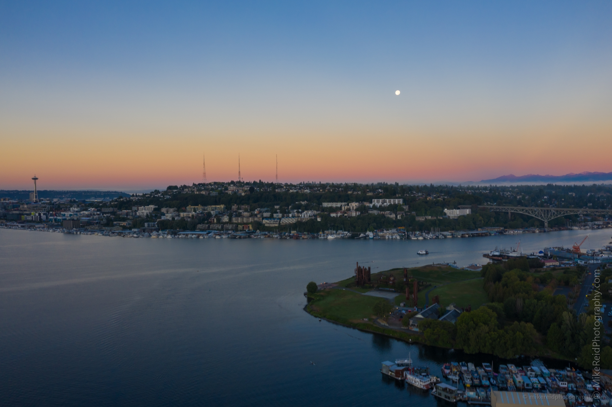 Seattle Aerial Photography Moonset over Queen Anne Hill #seattle #dronephotography #dronevideo #aerial #aerialphotography #aerialvideo #northwest #washingtonstate
