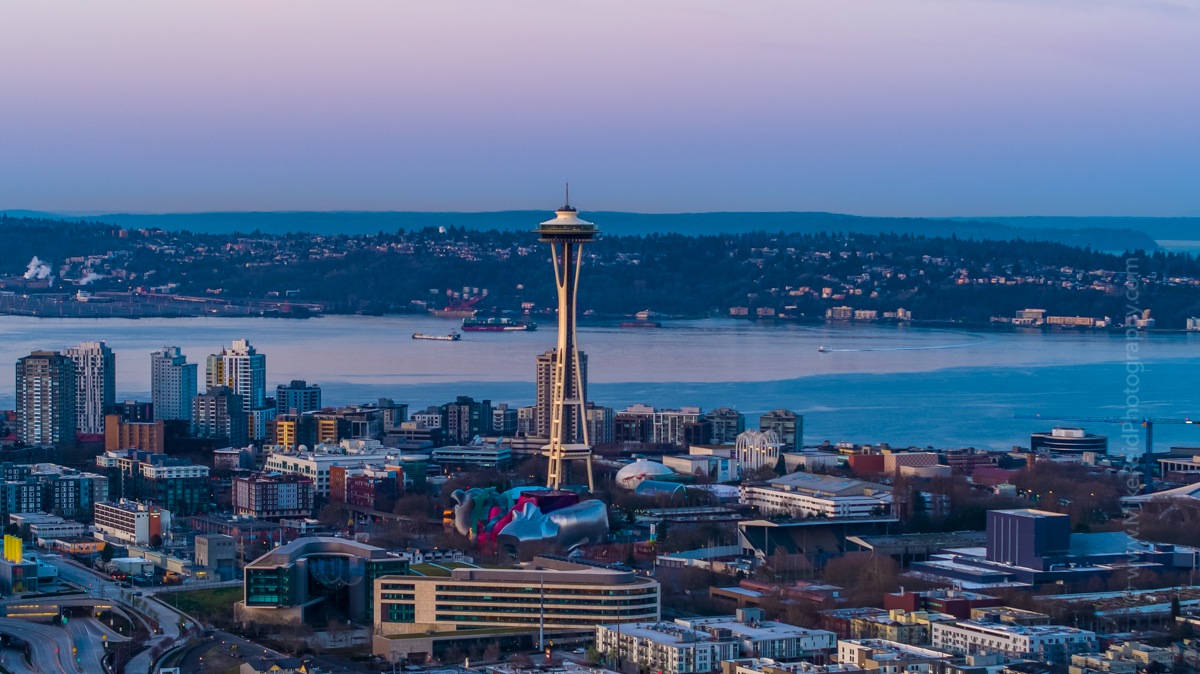 Seattle Aerial Photography Space Needle Dawn Light #seattle #dronephotography #dronevideo #aerial #aerialphotography #aerialvideo #northwest #washingtonstate