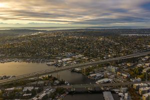 Seattle Aerial Photography Two Bridges Dusk #seattle #dronephotography #dronevideo #aerial #aerialphotography #aerialvideo #northwest #washingtonstate