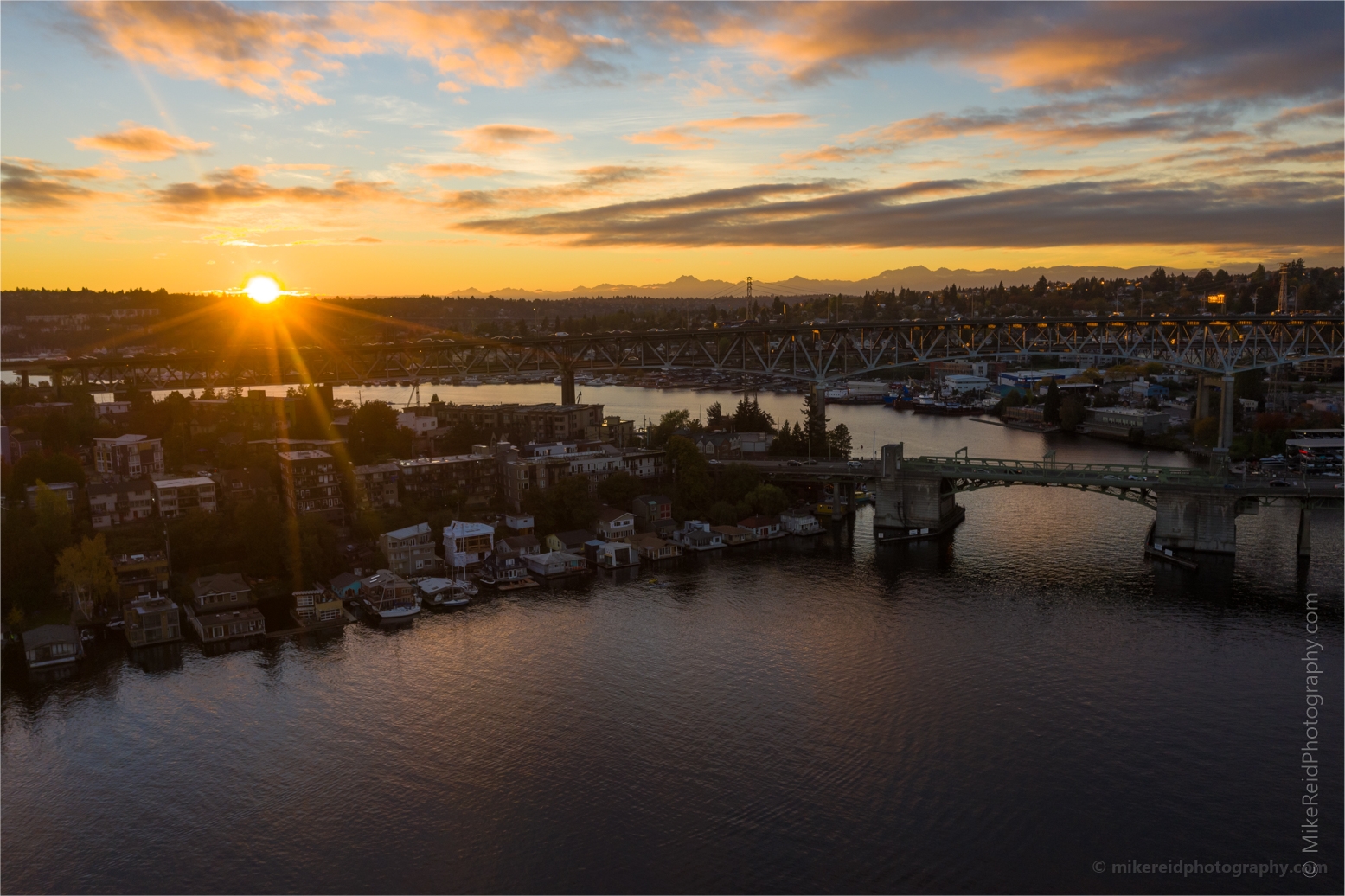 Seattle Aerial Photography University and Freeway Bridges Sunset #seattle #dronephotography #dronevideo #aerial #aerialphotography #aerialvideo #northwest #washingtonstate
