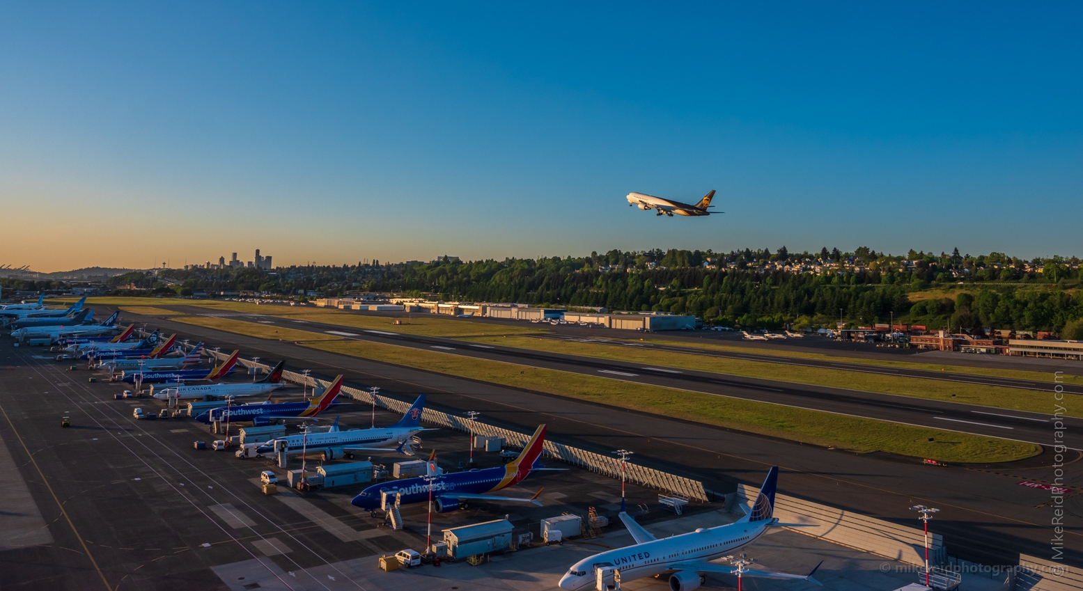 UPS Cargo Plane Leaving Seattle Aerial Drone Evening Light #seattle #dronephotography #dronevideo #aerial #aerialphotography #aerialvideo #northwest #washingtonstate