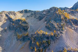 Golden alpine larches glow along the rugged slopes below Rainy Peak in this stunning aerial view of Heather–Maple Pass in Washington’s North Cascades. Captured in warm afternoon light, this fine art aerial photograph by Mike Reid Photography reveals the perfect balance of sunlight, stone, and autumn color high above the Pacific Northwest wilderness. A celebration of fall’s fleeting brilliance in one of the Cascades’ most breathtaking locations.