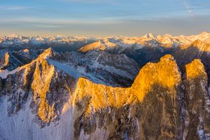 Golden morning light ignites the granite spires of Liberty Bell and the surrounding North Cascades peaks in this breathtaking sunrise aerial by Mike Reid Photography. Captured above Washington Pass, the early sun casts long shadows across snow-dusted ridges, revealing the dramatic textures and glowing alpine majesty of the Pacific Northwest mountains. A striking fine art aerial print for lovers of light, elevation, and wilderness beauty.