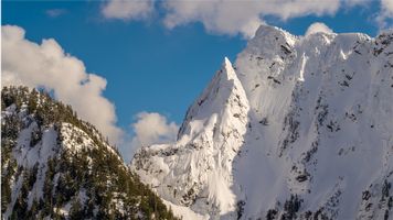 A dramatic winter view along Washington’s Mountain Loop Highway, featuring rugged snow-covered peaks under brilliant blue skies. Captured by Mike Reid, this fine-art mountain photograph highlights the sharp alpine textures and light of the North Cascades in winter — a stunning celebration of Pacific Northwest wilderness.