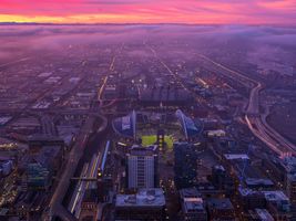 Seattle Photography SODO Stadium Sunrise and Flowing Traffic
