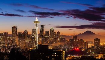 I was driving a friend to the airport on Christmas Eve, and since I was up early, I decided to see what was happening at Kerry Park. So glad I did. A magical Seattle sunrise from Kerry Park featuring the Space Needle adorned with festive Christmas lights, rising above a layer of soft morning fog. Downtown Seattle glows warmly beneath the twilight sky, while Mount Rainier stands silhouetted in the distance.
