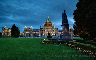 BC Government Buildings and Queen Victoria Dusk.jpg