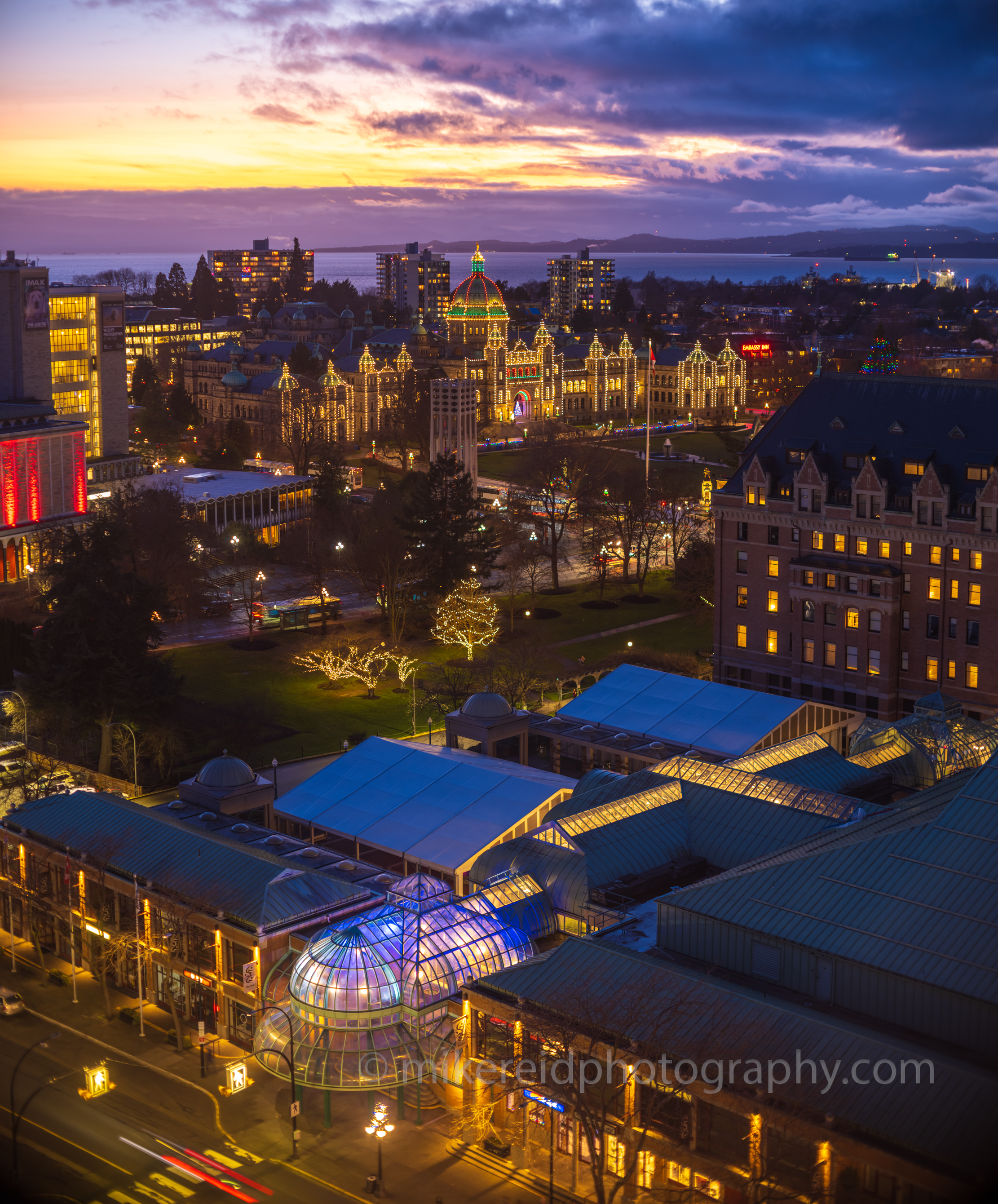 Victoria BC Victoria Parliament and Empress Sunset.jpg